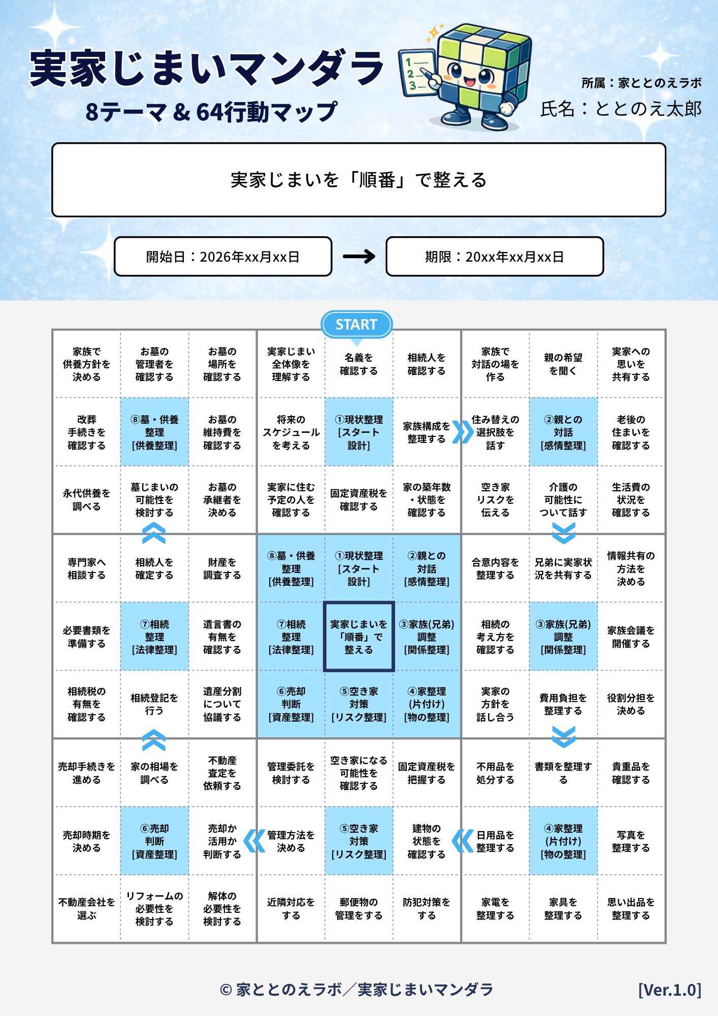 ※本マンダラの64行動は、実家じまいにおいて特に優先度の高い行動を整理したものです